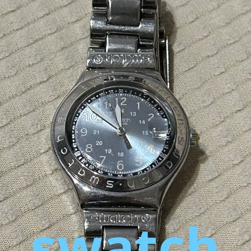 Swatch 손목시계 아이로니 네이비 스테인리스 스틸