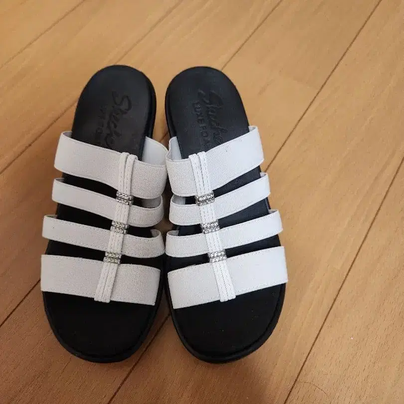 스트랩이 있는 화이트 웨지 샌들, 비쥬 장식이 매력적입니다. - 브랜드: Skechers - 색상: 화이트 - 스타일: 웨지 샌들 - 디자인: 스트랩 포함, 비쥬 장식 - 밑창: 러버 솔 - 굽 높이: 웨지 힐 방문해 주셔서 감사합니다.