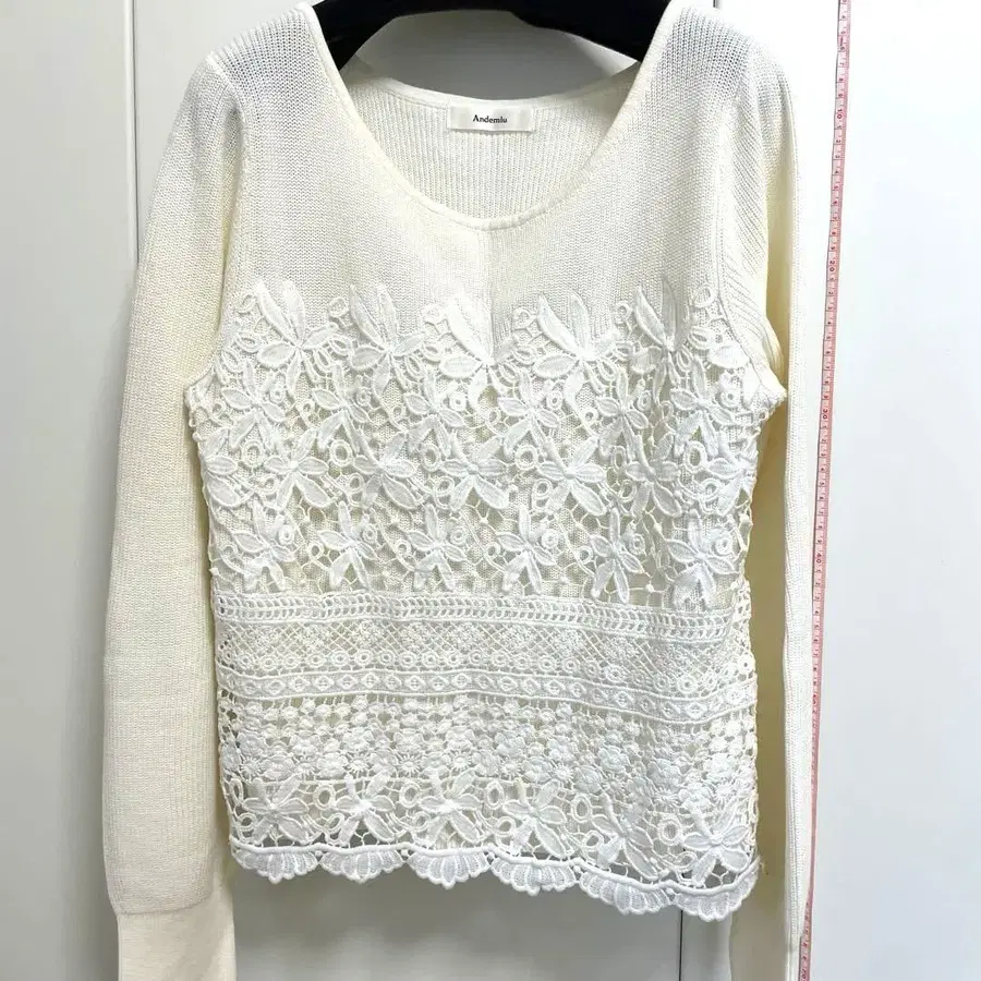 Andemiu 프론트 레이스 니트 풀오버 화이트