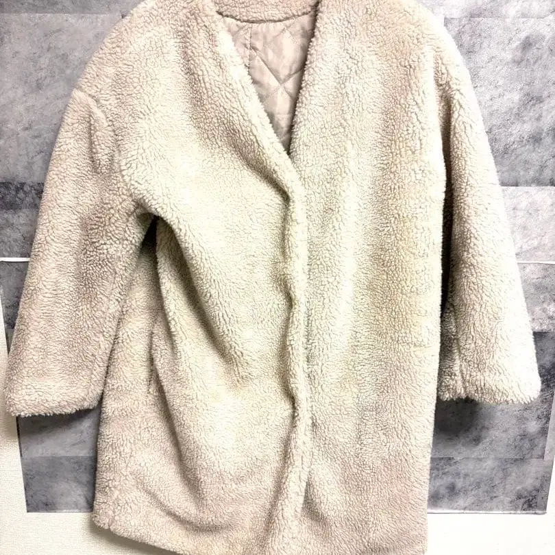아이보리 플리스 롱 코트, 7부 소매, 퀼팅 안감 부착. - 색상: 아이보리 - 소재: 플리스 - 디자인: 오픈 프론트 - 소매: 7부 소매 - 안감: 퀼팅 - 스타일: 캐주얼 폴리에스테르 100% 방문해 주셔서 감사합니다. 사이즈 - S