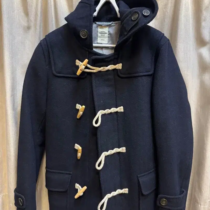 자동 번역되었어요. 원문보기더플 코트입니다. 네이비 색상이며, 토글 버튼이 특징적인 디자인입니다. 평소 사용하기 쉬운 심플한 디자인으로, 다양한 코디네이트에 맞추기 쉬울 것 같습니다.