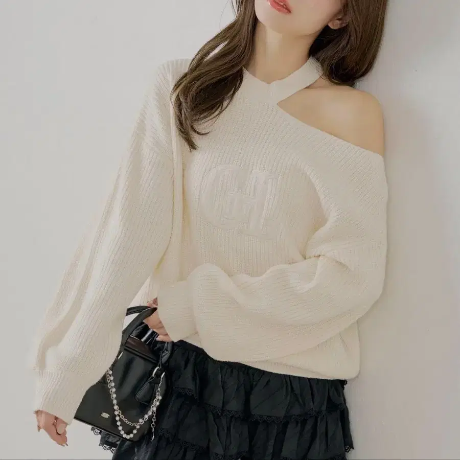 SAISON DE PAPILLON 화이트 어깨 트임 니트 긴팔