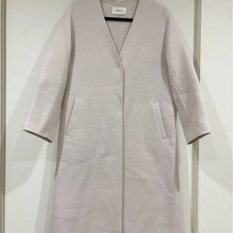 라이트 핑크 V넥 롱 코트, 포켓 부착