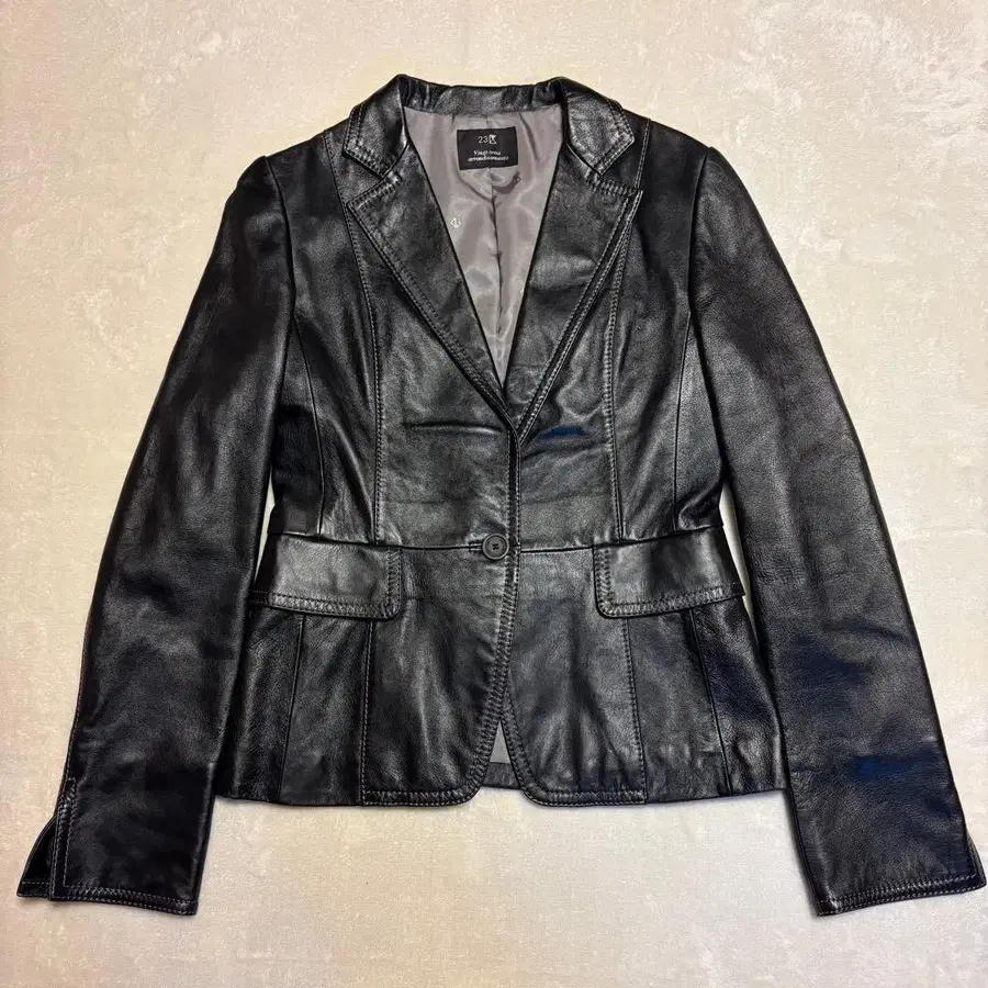 23구 블랙 가죽 테일러드 자켓 라무피 크롭 기장 안감 패턴 38