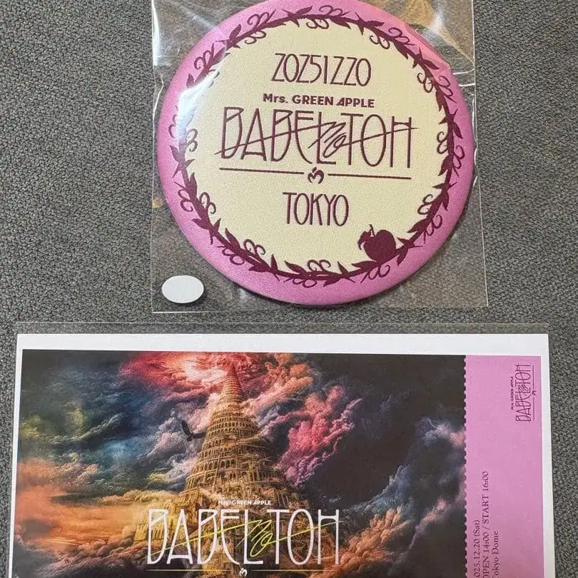 미세스 그린애플 바벨탑 12/20 도쿄 캔뱃지 픽처 티켓