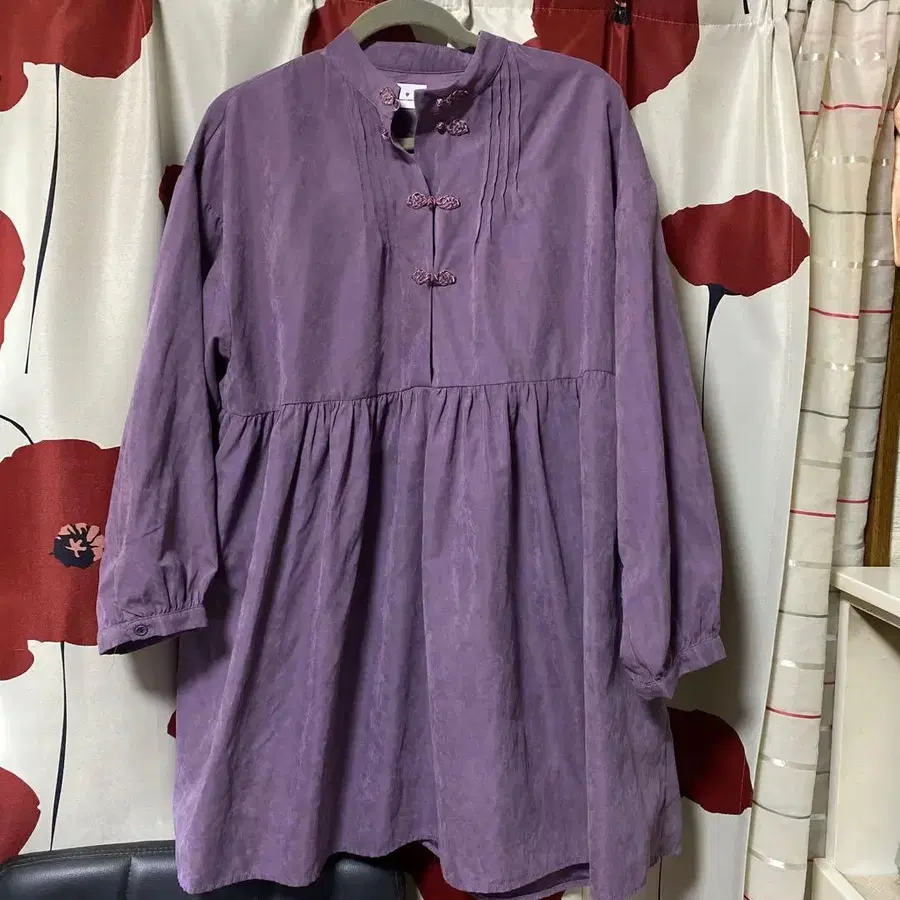 차이나풍 퍼플 A라인 긴팔 튜닉 오버 사이즈