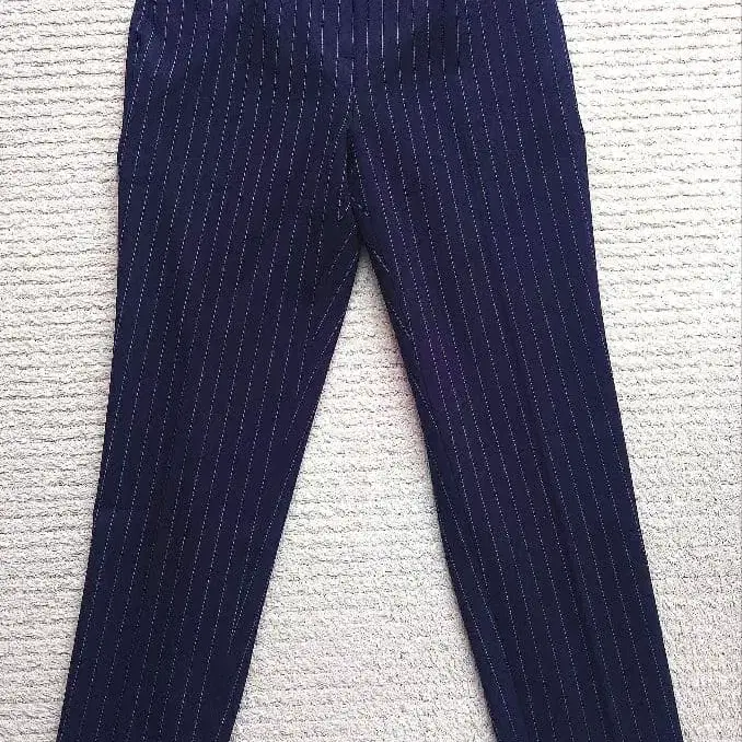 내추럴 뷰티 베이직의 스트라이프 패턴 속기모 테이퍼드 팬츠입니다. 세탁 가능한 상품입니다. ● 사이즈: S 사이즈 허리 72cm 총길이 84cm 인심 63cm 밑위 23cm 허벅지 25cm 밑단 폭 13cm 개인의 치수 측정으로 약간의 오차가 있을 수 있습니다. 양해 부탁드립니다. ● 색상: 네이비 스트라이프 ● 소재: 폴리에스테르 45% 레이온 35% 아크릴 15% 폴리우레탄 5% ● 정가: 9800엔 ● 상태: 미사용 새상품 미사용 새상품이지만 자택 아파트에서 보관한 중고품이라는 점을 이해하신 후 구매 부탁드립니다.