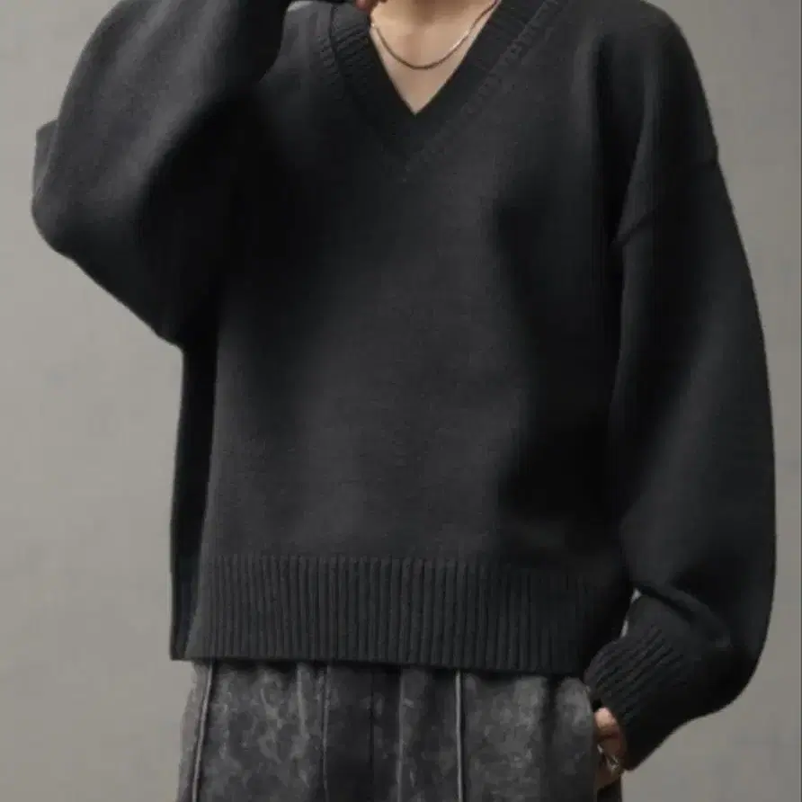 [ welise/웰라이즈 ] 멀티플 펑션 오버 슬리브 숏 기장 이중 옷깃 V넥 니트 ◼️ 브랜드 welise ◼️ 컬러 차콜 그레이 ◼️ 사이즈 L ◼️ 상태 새상품 미사용 택 포함