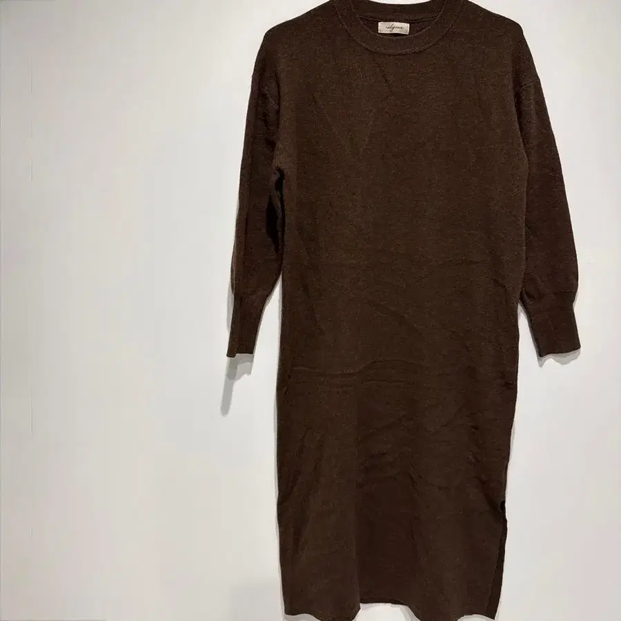 자동 번역되었어요. 원문보기브라운 니트 롱 원피스, 긴팔 디자인.