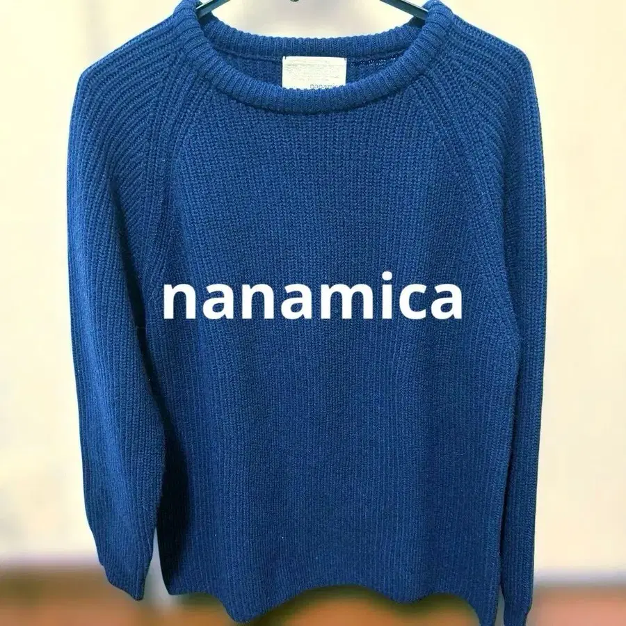 나나미카의 울&폴리에스테르 혼방 스웨터입니다. 색상은 네이비입니다. 심플하면서도 존재감 있는 스웨터입니다. 사이즈 M입니다.