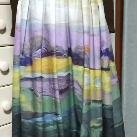 자동 번역되었어요. 원문보기시빌라 인기였던 풍경화풍의 멀티 컬러 플레어 롱 스커트