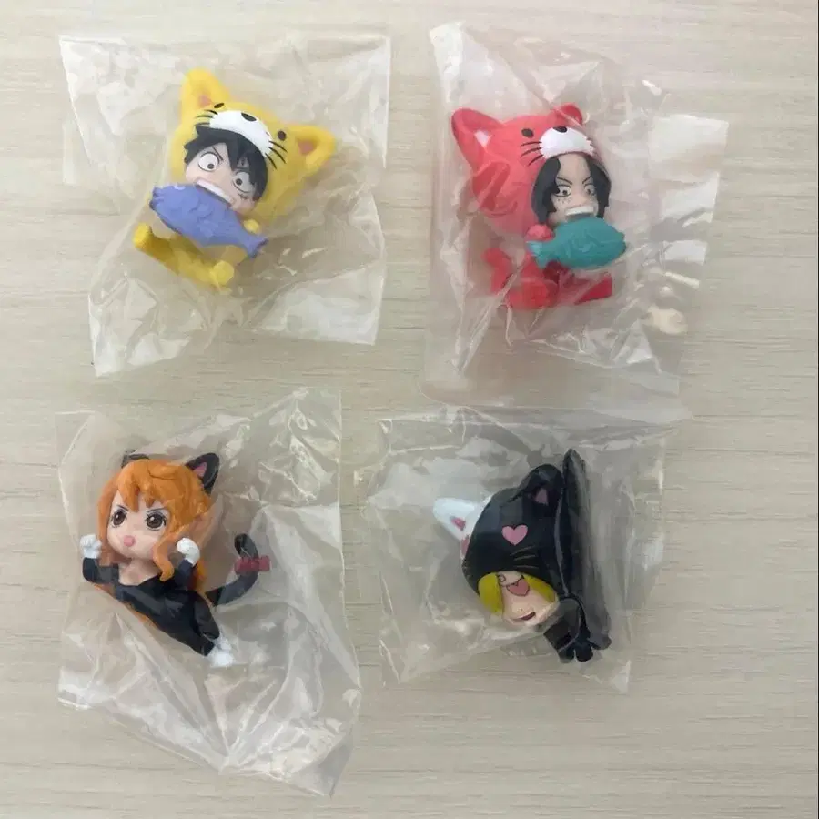 원피스 반다이 가챠가챠 냥피스 마스코트 루피 나미 상디 에이스 위 캐릭터 4종 세트입니다. 에어캡으로 포장하여 익명 배송합니다.