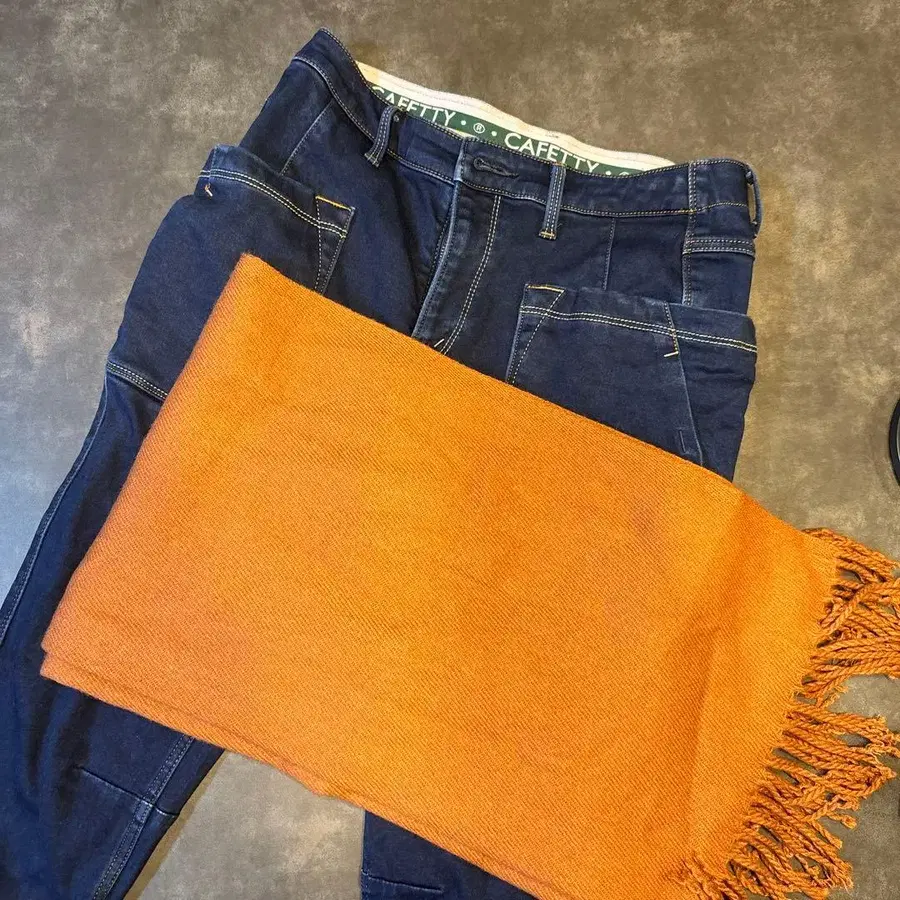 2년 전 다크 블루 데님을 1만 엔 정도에 구매했습니다. 브랜드는 카페티? 속기모로 따뜻합니다. L 사이즈 (꽤 큽니다) 머플러는 그 근처 가게에서 3000엔 정도에 구매한 것입니다.