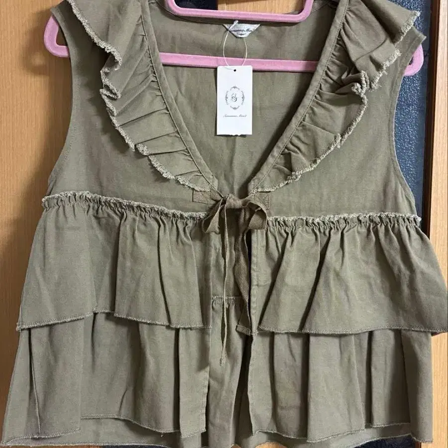 택 포함 새상품 사만사 모스모스 프릴 티어드 베스트 카키