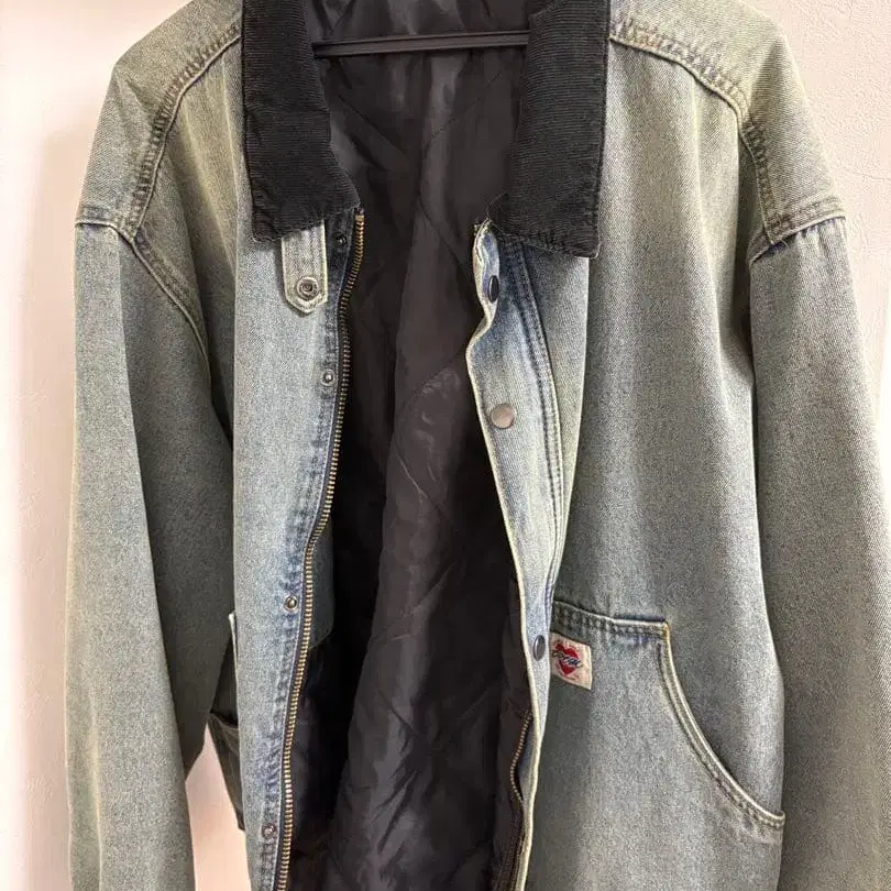 CPCM의 데님 블루종입니다. 옷깃 부분이 코듀로이로 되어 있으며 안쪽 포켓도 달려 있습니다. 전체적으로 오버 사이즈로 제작되었습니다. 잘 부탁드립니다.