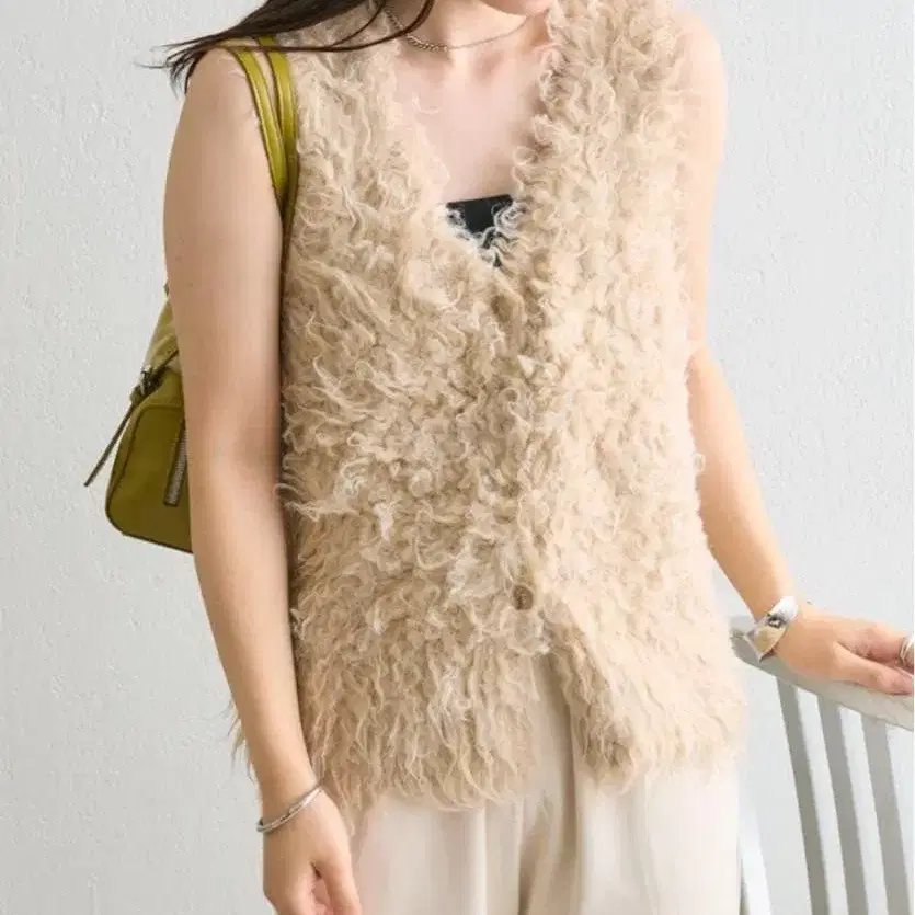 • mici 라메 니트 베스트 화이트