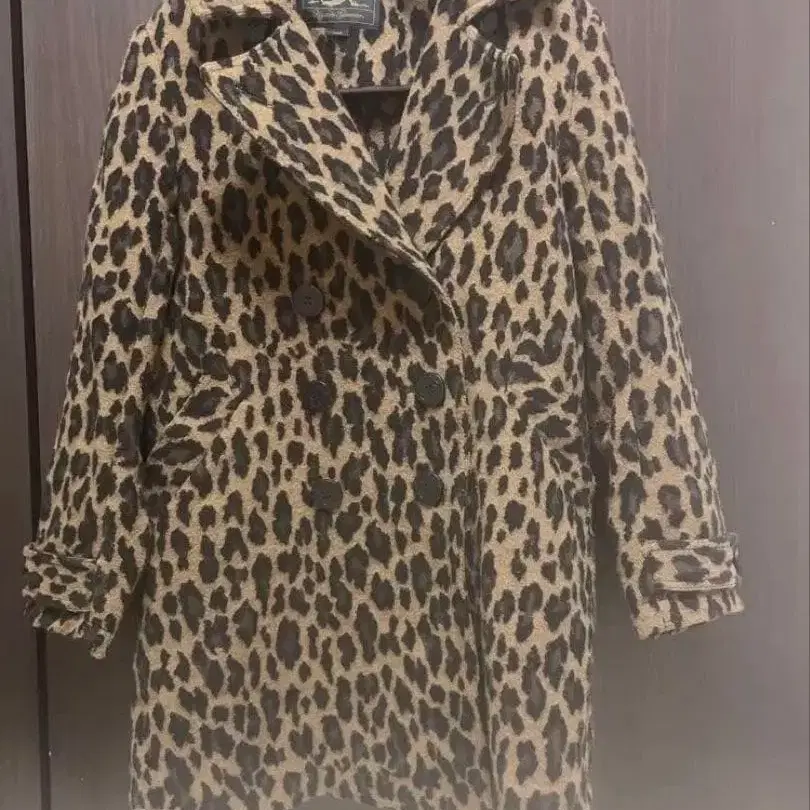 레오파드 무늬 더블 브레스트 코트