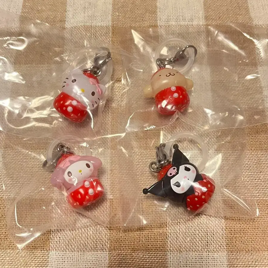 산리오 캐릭터즈 딸기 메지루시 액세서리 4개 세트