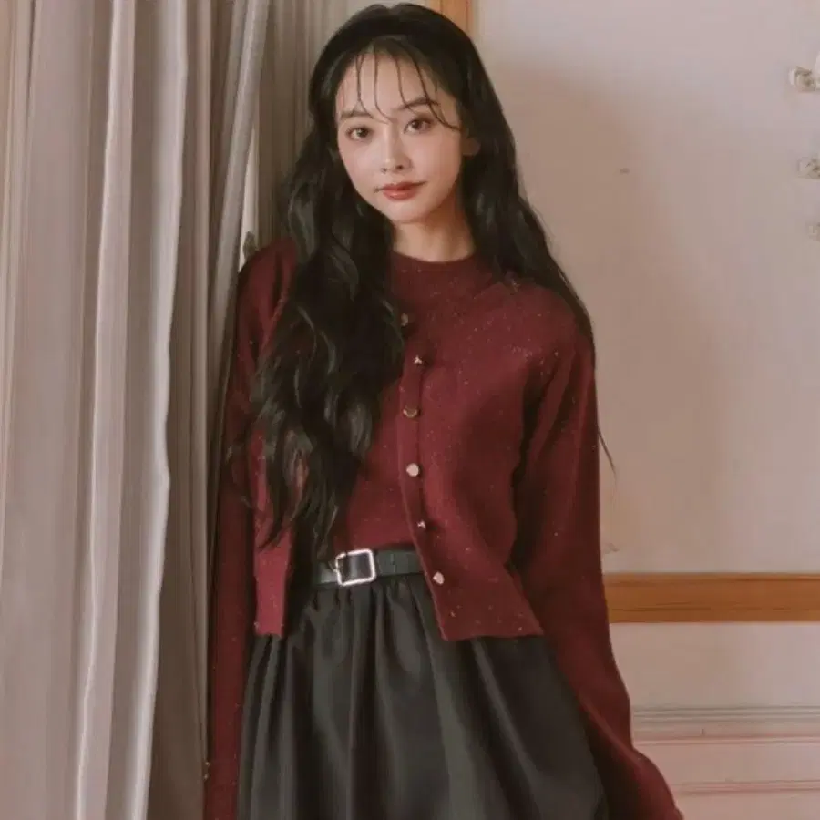 archives 앙상블 골드 버튼 라메 니트 앙상블 와인 레드
