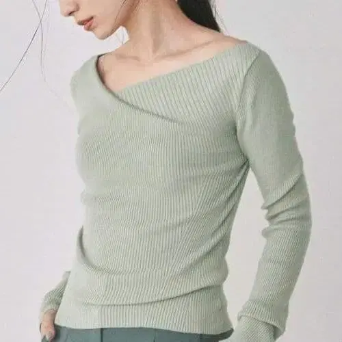 턱 데콜테 리브 니트