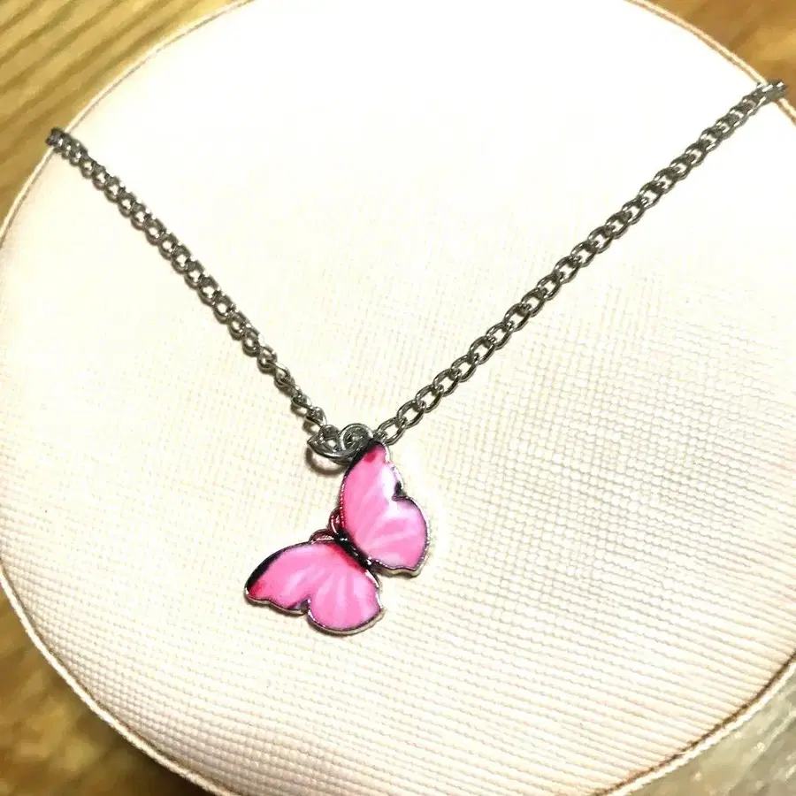 핑크색 나비 모티브가 사랑스러운 목걸이. - 디자인: 나비 모티브 - 색상: 핑크 - 체인 소재: 금속제 - 장식: 에나멜 마감 방문해 주셔서 감사합니다.