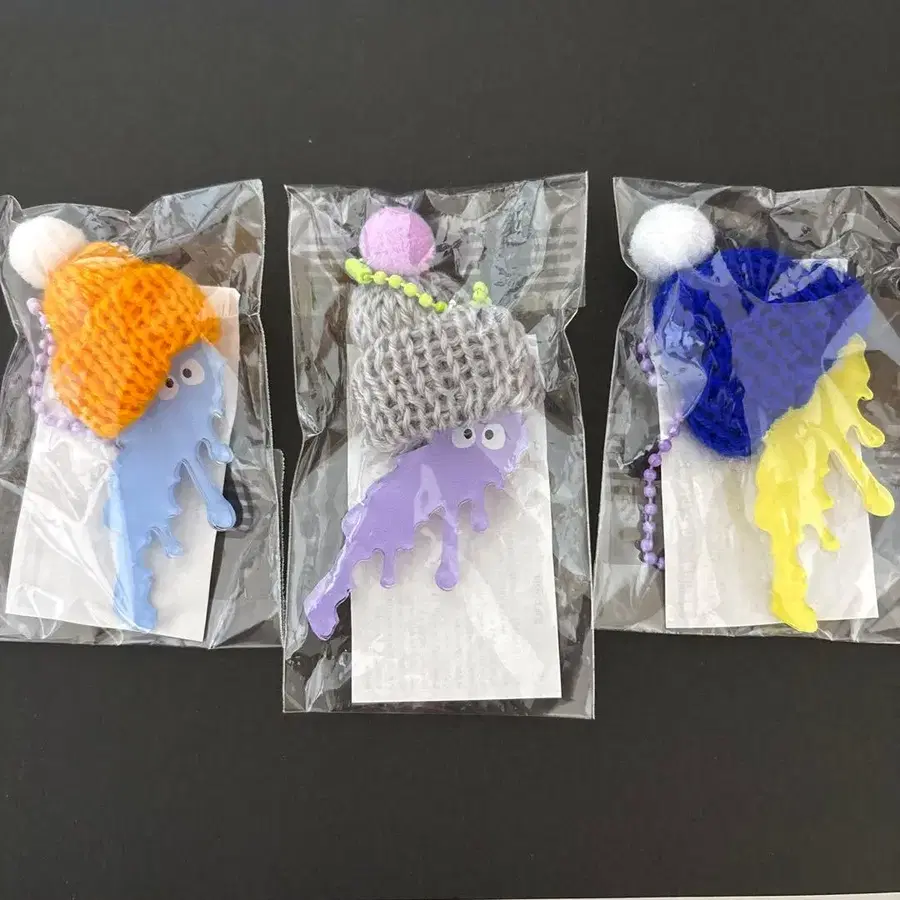 비와코 아크릴 키링 도도로 니트 모자 버전 3개 세트 보라색, 옐로우 컬러, 스카이블루 인기 귀엽습니다