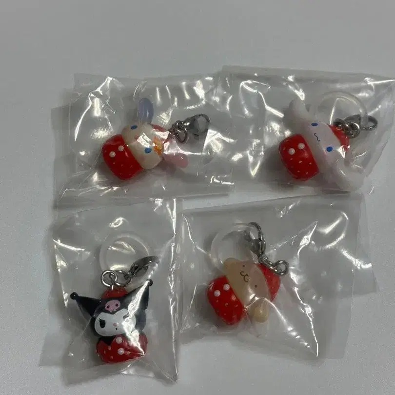 산리오 캐릭터즈 딸기 메지루시 액세서리 4개 세트 ※ 낱개 판매 불가 미사용 미개봉 새상품입니다. 가챠가챠 상품이므로 초기 흠집, 얼룩은 양해 부탁드립니다. 에어캡으로 감싸서 유패킷 포스트 mini로 발송합니다.