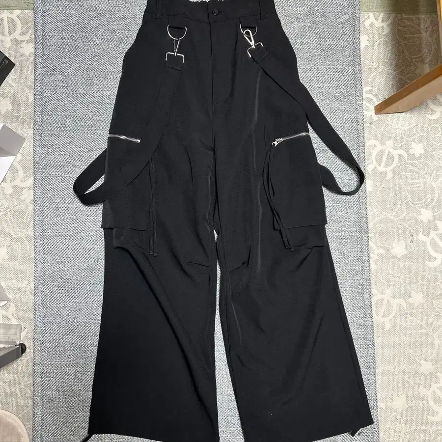 서스펜더가 달린 블랙 와이드 팬츠, 지퍼 포켓이 있어 기능적입니다. - 색상: 블랙 - 사이즈: S - 디자인: 서스펜더 부착, 지퍼 포켓 - 스타일: 와이드 팬츠 - 브랜드: LILL 방문해 주셔서 감사합니다.