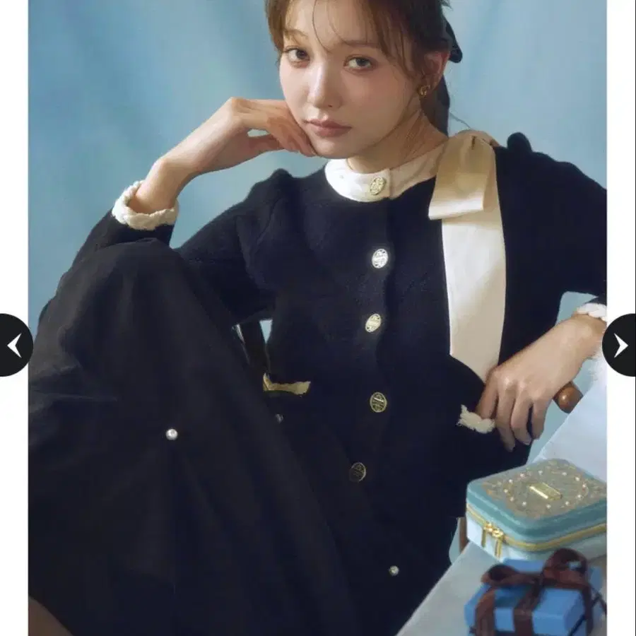리랜드트루 MARIEBELLE 콜라보 리본 니트 자켓 블랙 1회 착용만