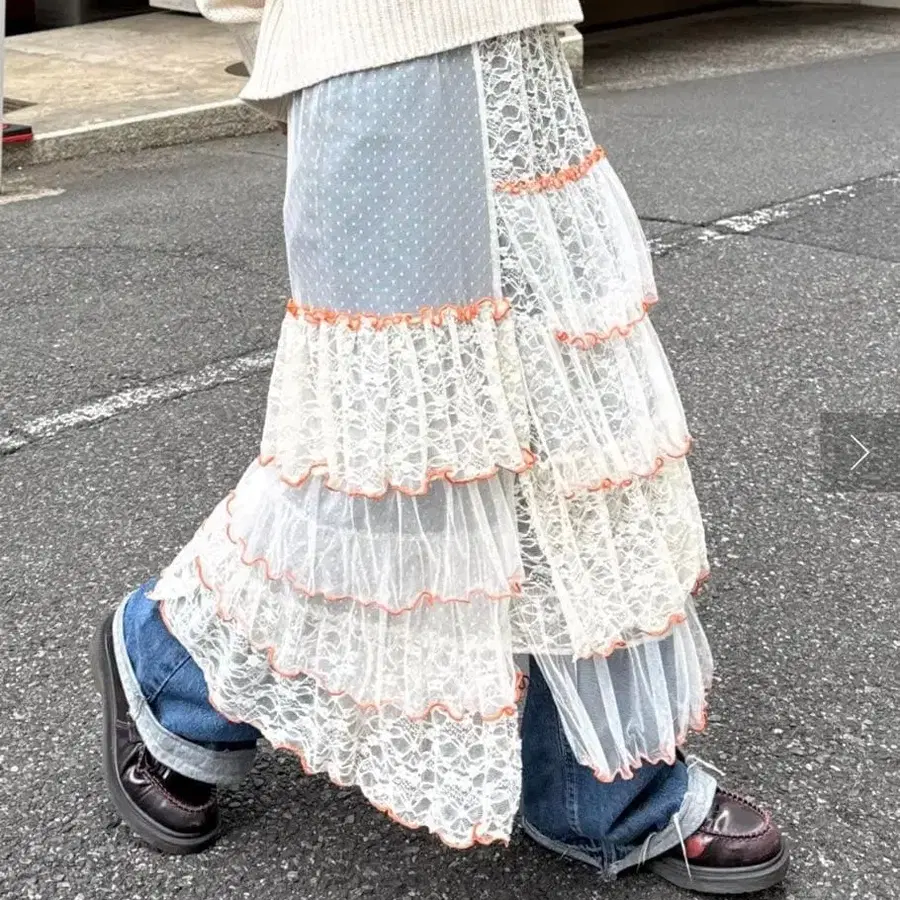 Honey Cinnamon 포인트 레이스 캉캉 스커트