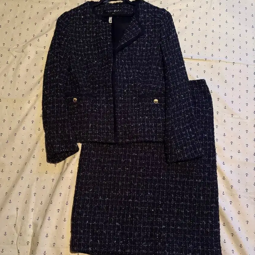 [새상품급] 로트레아몽 셋업 수트 스커트 트위드 네이비