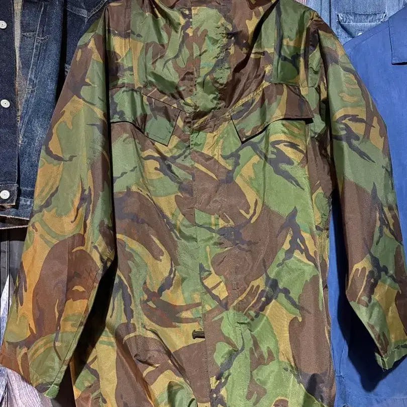 실측치수 평평하게 놓음 약 어깨 너비 50cm 가슴 너비 겨드랑이~겨드랑이 64cm 기장 뒷면 후드 부착 부분부터 80cm 소매 길이 어깨부터 62cm