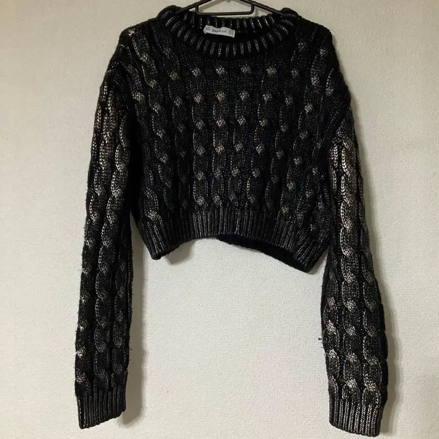 케이블 짜임 디자인의 블랙 그레이 크롭 스웨터, ZARA 제조, M 사이즈.