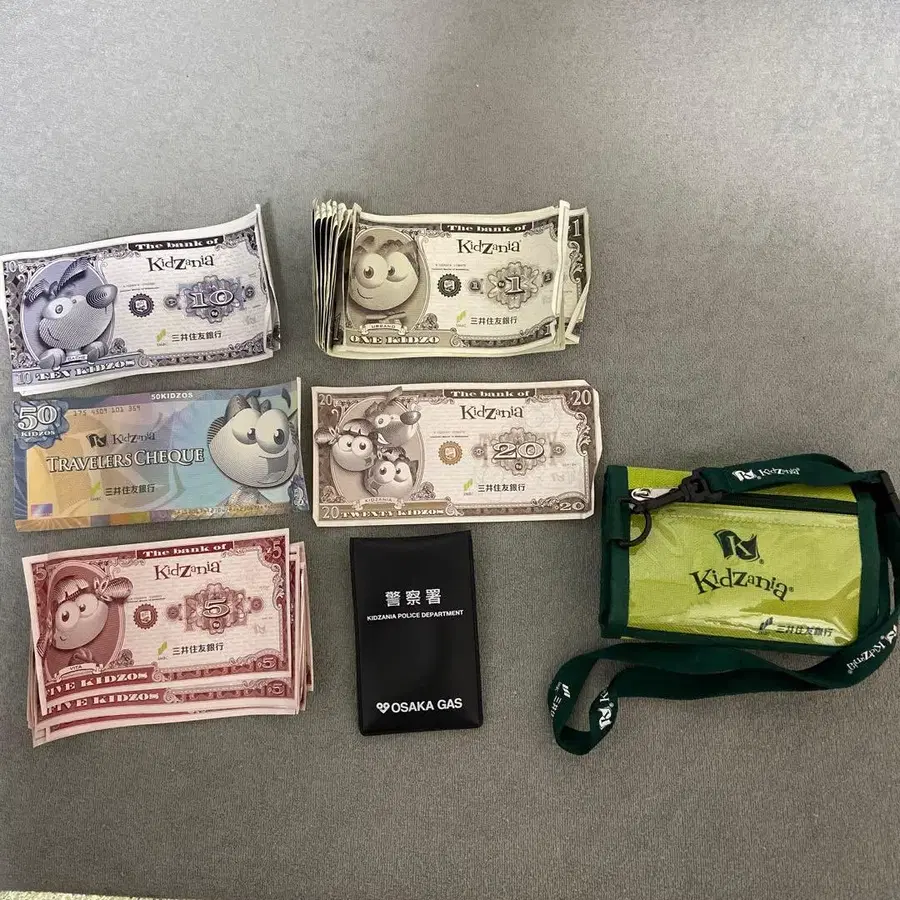 키자니아 지갑, 돈, 경찰 수첩 1키조 20장 5키조 12장 10키조 2장 20키조 1장 50키조 1장