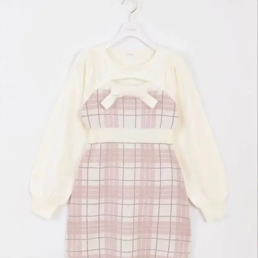 evelyn 체크 무늬 리본 포함 원피스 화이트/핑크