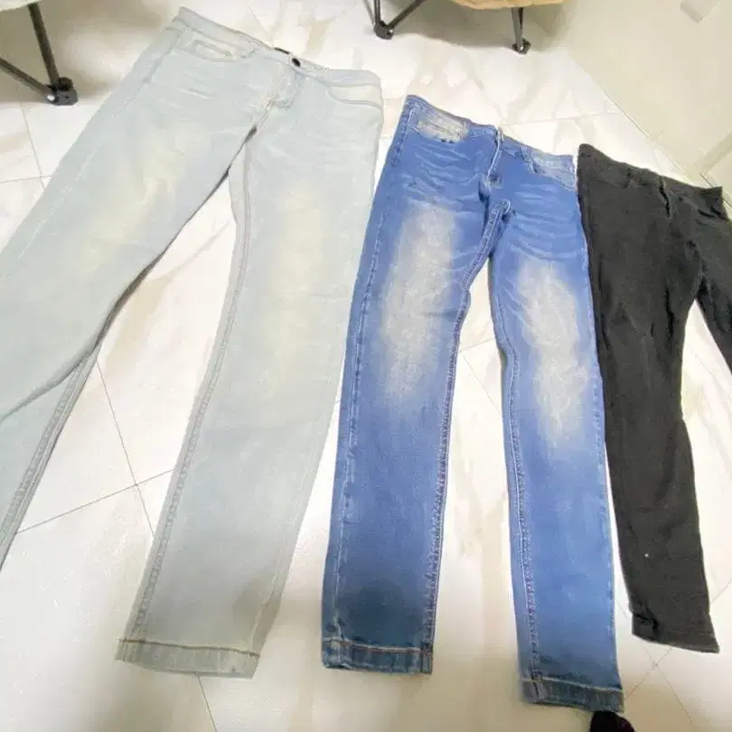 3개 세트 (낱개 판매 가능) 1개 4500엔 스키니 팬츠 사이즈는 32 종류는 스키니 팬츠 색상은 블루, 블랙, 라이트 블루 3가지입니다. 잘 부탁드립니다.