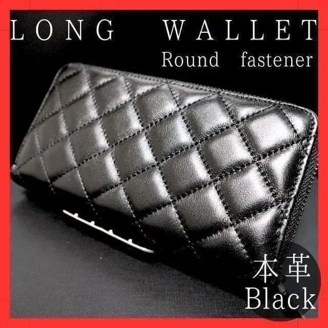 장지갑 천연 가죽 라운드 지퍼 퀼팅 인기 새상품 블랙 대용량 블랙