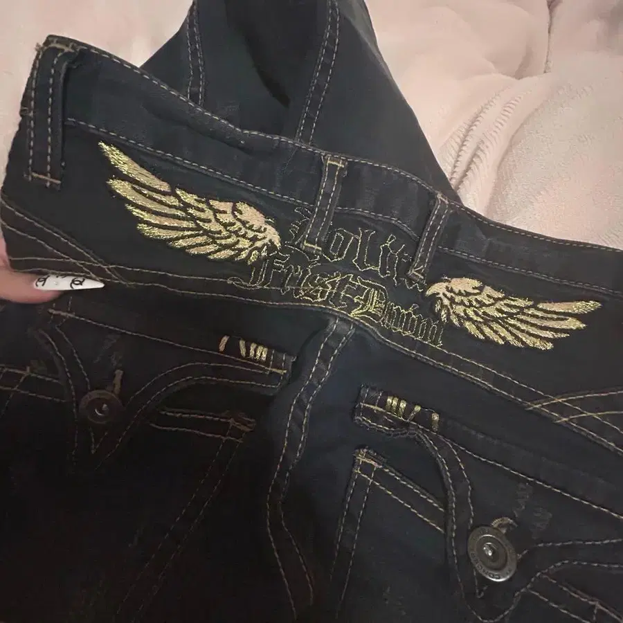 Y2K 레드페퍼 데님 팬츠 해골 천사의 깃털 27 M 상당