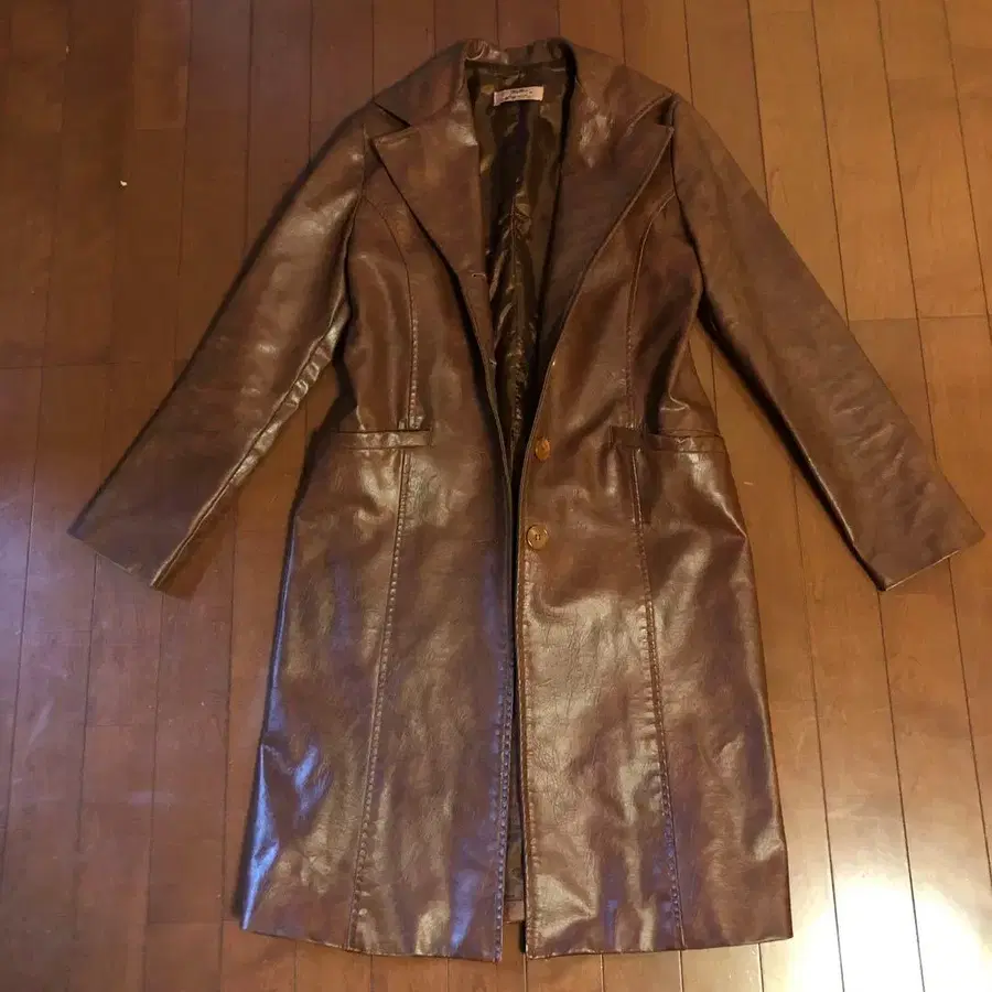 고품질의 브라운 인조 가죽 롱 코트, 스타일리시한 디자인. 어깨 너비 38cm 기장 96cm - 색상: 브라운 - 소재: 인조 가죽 - 버튼: 4개 - 스타일: 롱 코트 방문해 주셔서 감사합니다!^_^