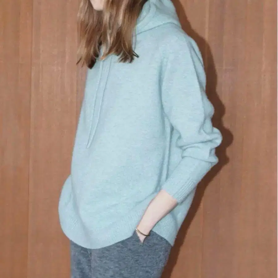 부드러운 촉감의 램스울 실을 사용하고, 심플한 천축 편직으로 후드 코드는 같은 실로 만들어 코디하기 쉬운 아이템입니다.