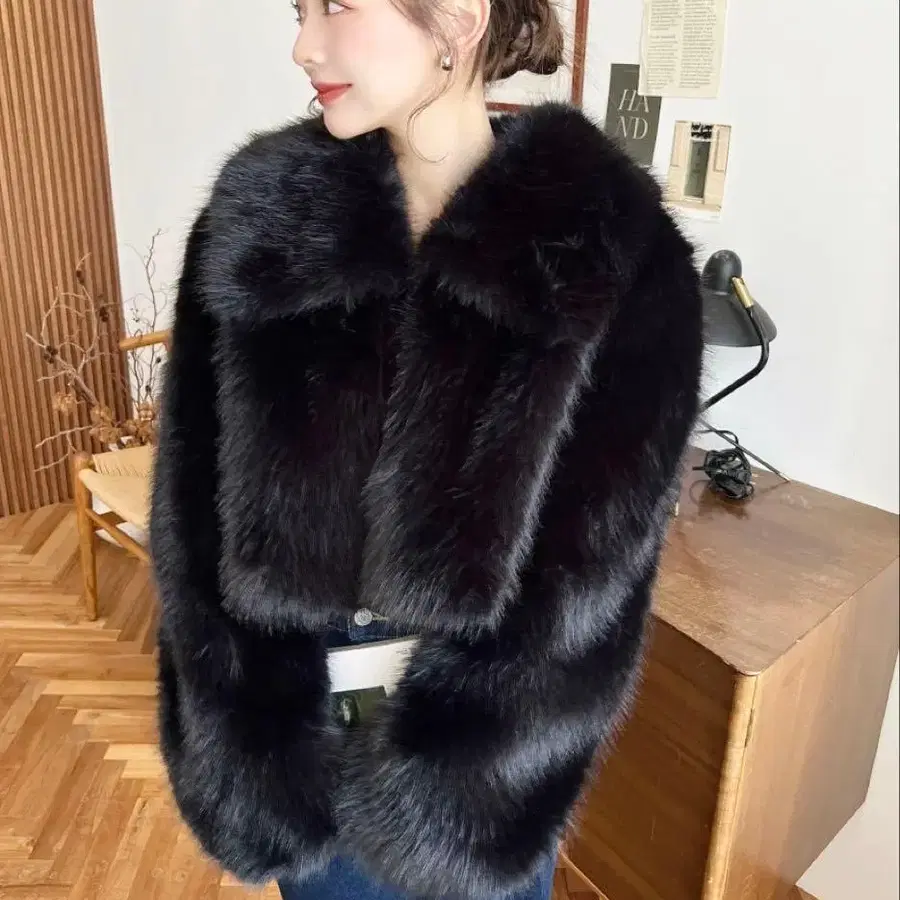 블랙 인조 모피 자켓 에코 퍼 하프 코트 카라 부착 PA221063