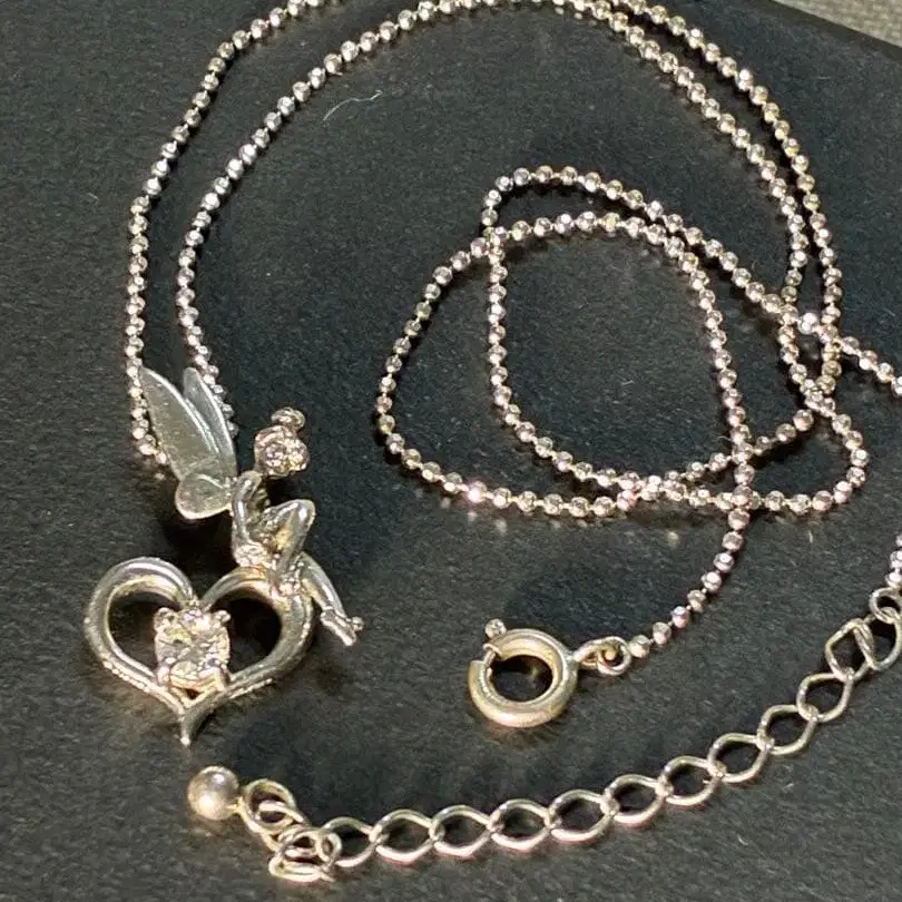 Disney 팅커벨 목걸이 실버 지르코니아 하트 각인 있음
