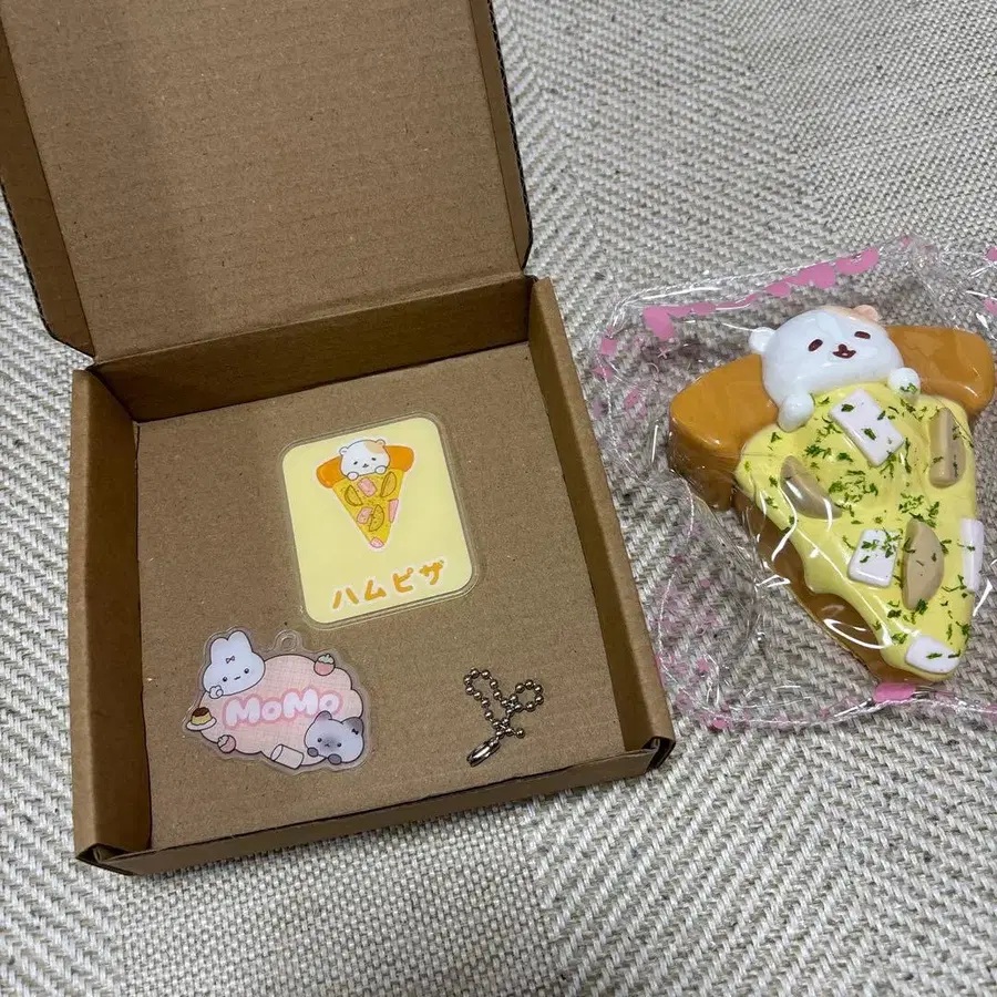 MOMO 스퀴즈 피자 햄스터 내용물 확인을 위해 개봉했지만, 미사용 새상품입니다. 에어캡은 사용하지 않고 OPP에 넣어 발송합니다. 브라운 색상의 외부 박스는 포함되지 않습니다.