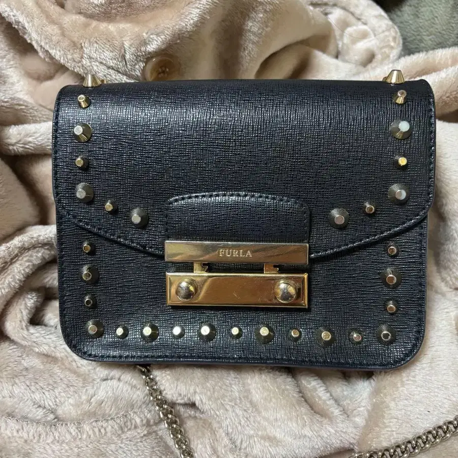 FURLA 스터드 장식 블랙 숄더백