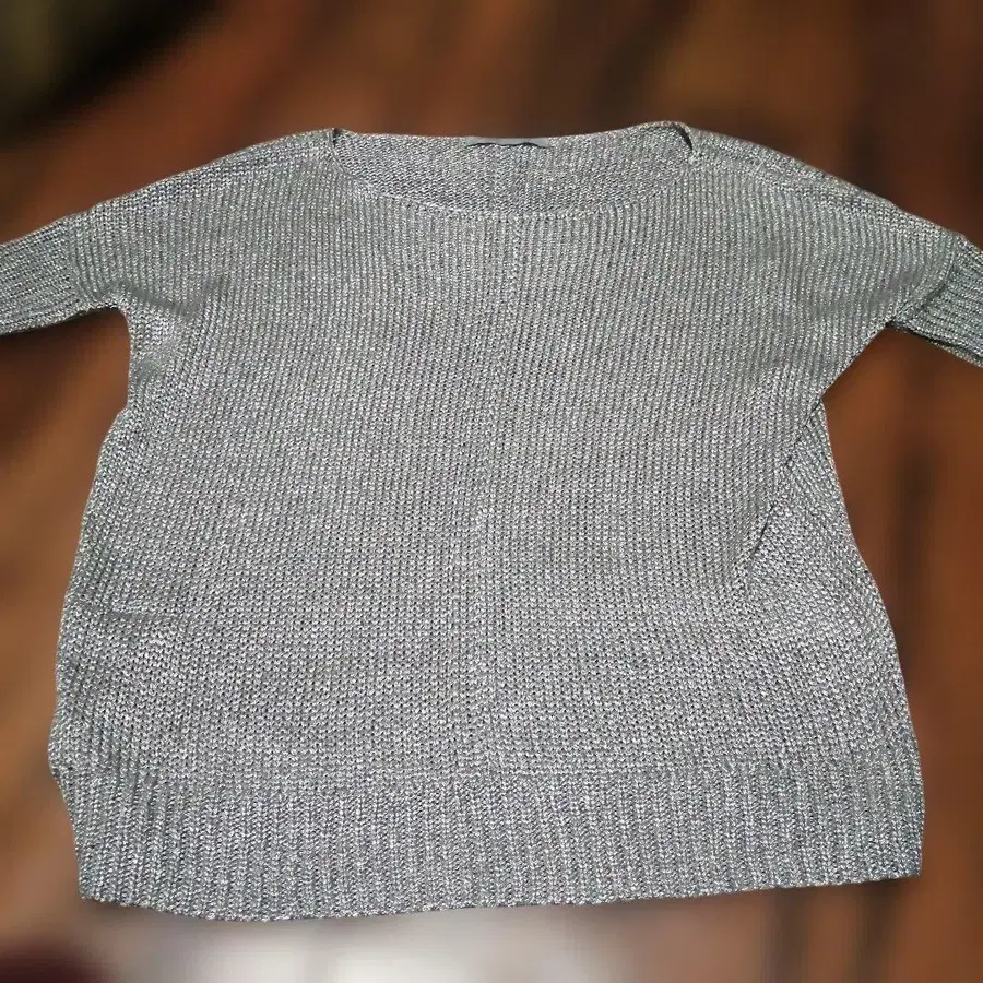 실버 색상의 38 사이즈, 디자인성이 뛰어난 반팔 스웨터. - 브랜드: Theory luxe - 색상: 실버 - 사이즈: 38 기장 62 가슴 너비 57 몇 회 사용
