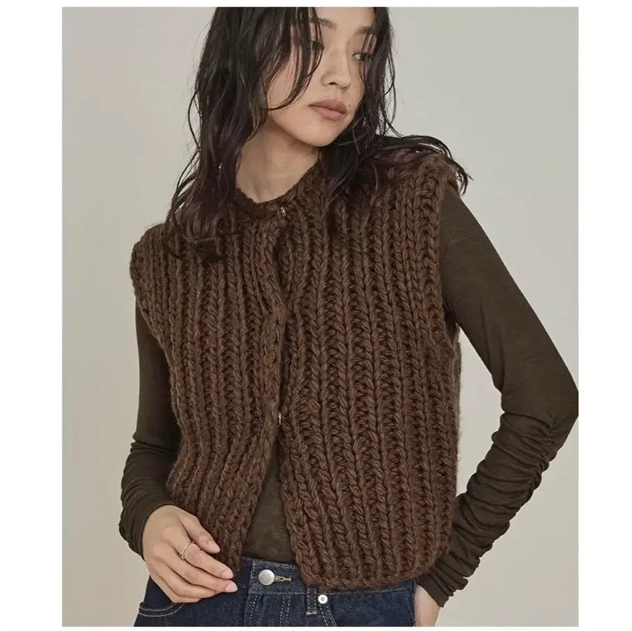 브라운 니트 베스트, 부드러운 소재로 쾌적한 착용감.
