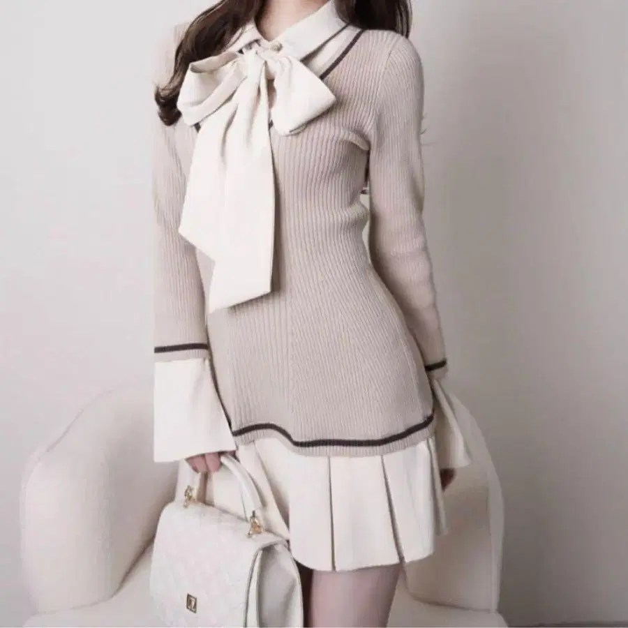 Mila Owen 니트 도킹 와셔 플리츠 원피스