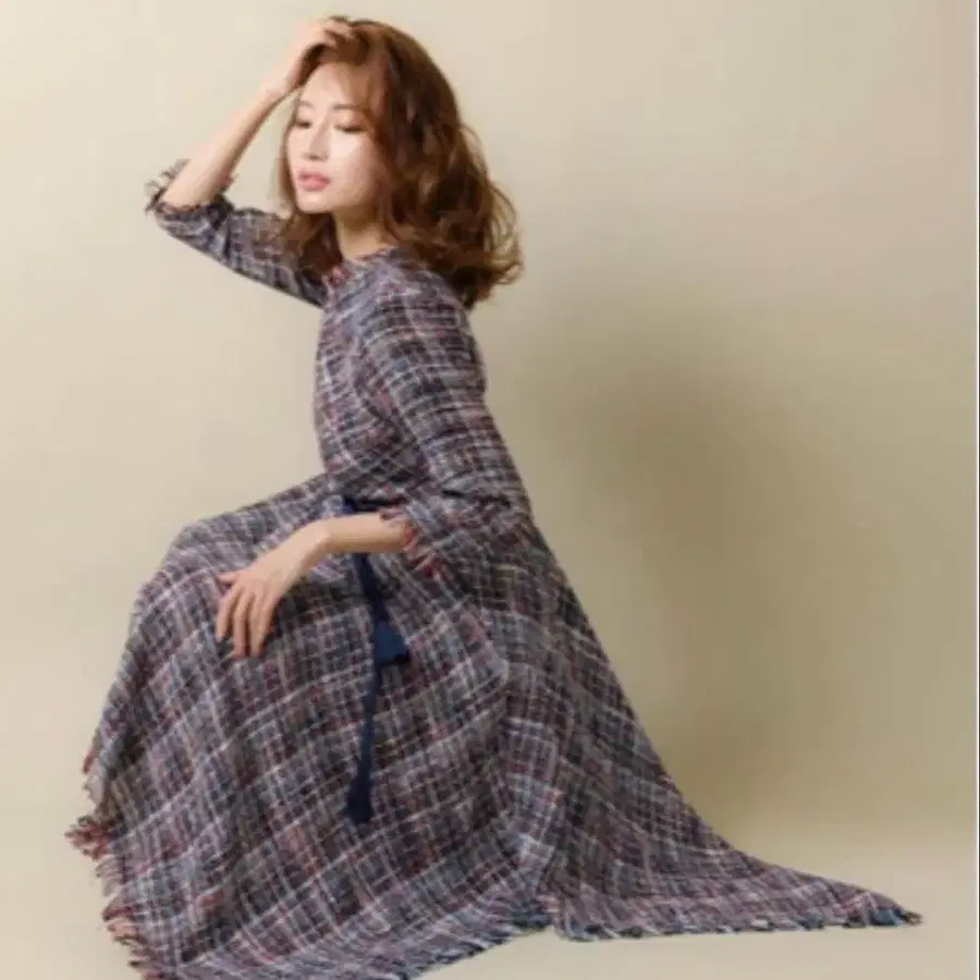 e'lffine 엘프 트위드 7부 기장 원피스 드레스 프린지