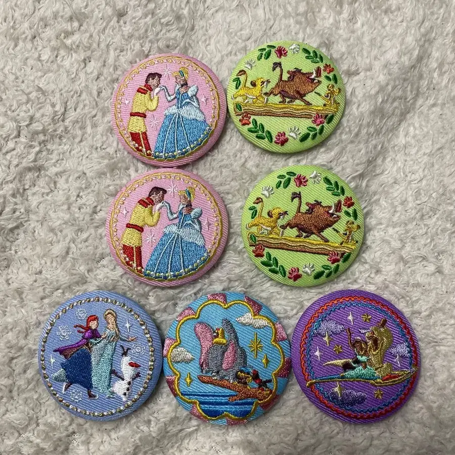 디즈니 프린세스와 동물 캐릭터 자수 핀 배지 8개 세트.
