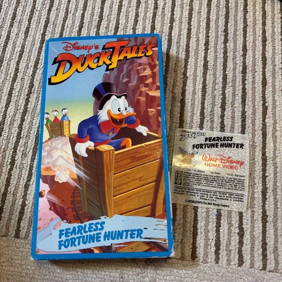 디즈니 TV 애니메이션 시리즈 [덕테일즈]의 VHS 비디오 [Disney's DuckTales - Fearless Fortune Hunter]입니다. 어릴 때 계속 보던 비디오입니다. 재생할 기계가 없어서 판매합니다.